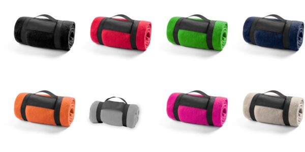 Χαρακτηριστικά: Blanket 130x160cm in a varied range of bright tones. In polar fleece material of 200g/m2 with anti-pilling treatment and carrying handle with velcro closure in soft polyester. Anti-Pilling. Polar Fleece 200 g/ m2