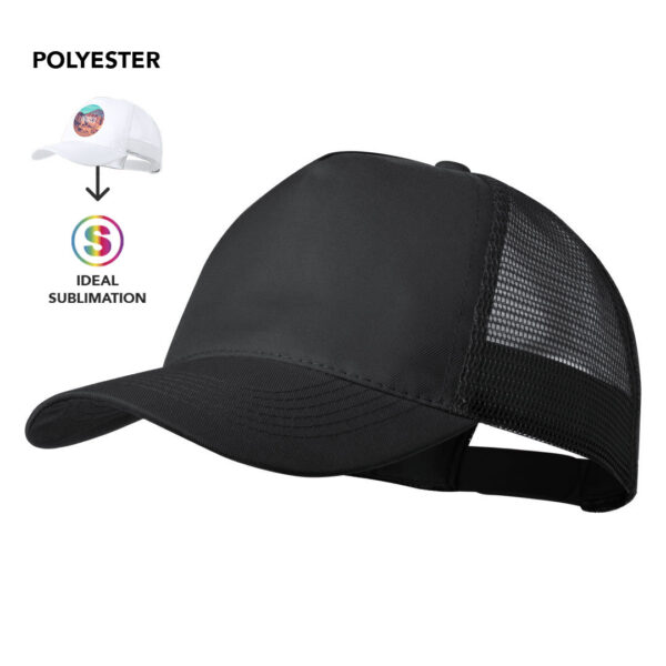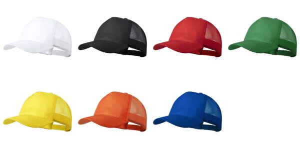 Χαρακτηριστικά: 5 panel cap in polyester, with mesh fabric and adjustable plastic closure. Available in a wide range of vivid colors (white color especially manufactured for sublimation printing). 5 Panels. Plastic Closure. Polyester