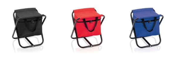 Χαρακτηριστικά: Folding chair with aluminum body and built-in cooler bag in seat, in varied colors. Resistant 600D polyester seat and cooler bag with reinforced seams. With zipper closure and practical carrying handles in nylon. With nylon reinforcement strip on the legs and isothermal inside in aluminum finish. Polyester 600D/ Aluminium