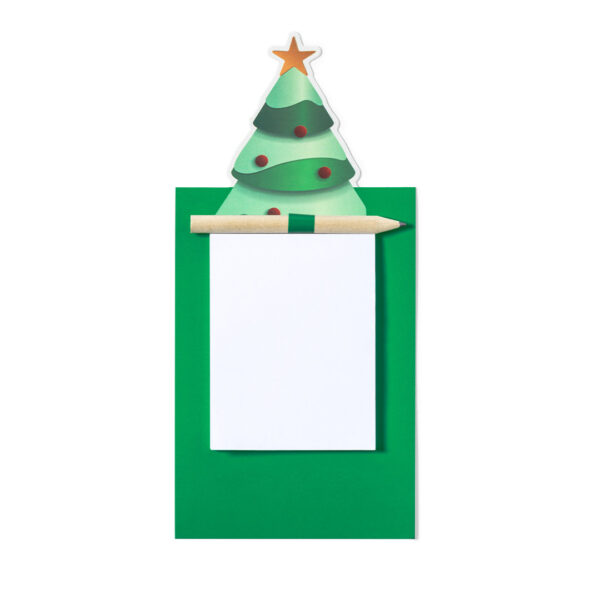 Χαρακτηριστικά: Magnet with notepad in a fun Christmas tree design. Includes 40 plain sheets and natural wood pencil. 40 Sheets Notepad. Pencil Included