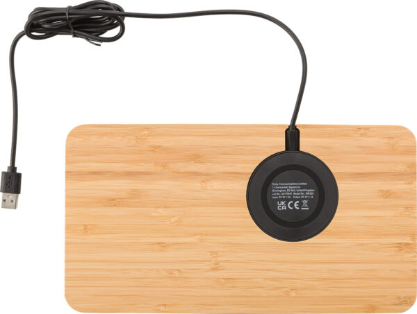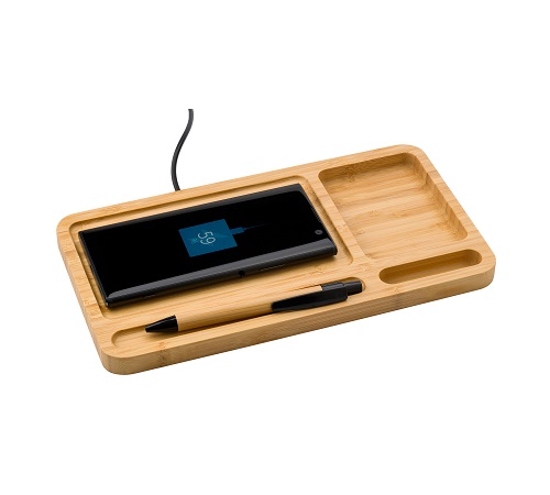 Χαρακτηριστικά: Bamboo desk organizer with wireless charging function (5W). Output 5V/800mA. Includes USB charging cable.