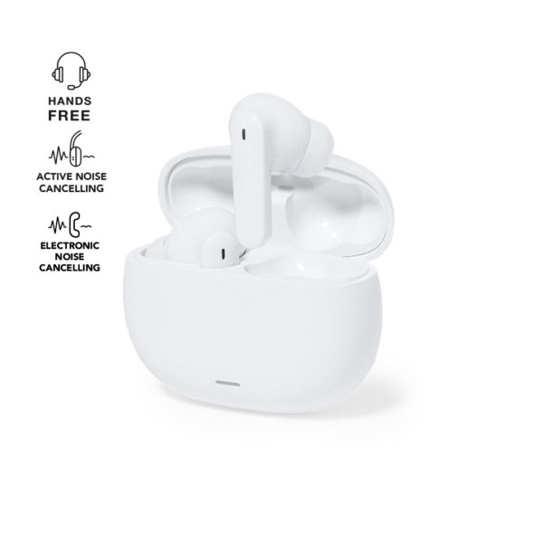 Χαρακτηριστικά: Earphones with ANC system (Active Noise Cancellation / Active Noise Cancellation), significantly reducing external noise for an optimal sound experience. Elegant white finish and Bluetooth connection. Ergonomically designed, featuring a touch control button integrated in the earphone, with matching charging base and charging status indicators. Hands-free function and USB rechargeable (cable included). Presented in an attractive design box. Bluetooth Connection. Battery 30 mAh/ Charging Station 230 mAh