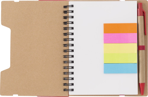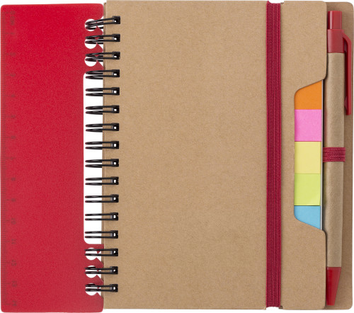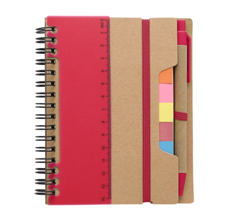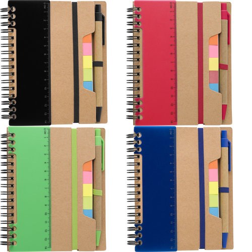 Χαρακτηριστικά: Recycled paper, wire bound notebook with 60 lined pages, ruler, and ballpen with blue ink. 5 Colours of sticky notes, 25 sheets per colour