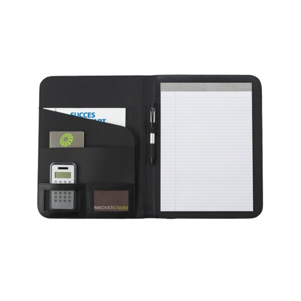 Χαρακτηριστικά: PU padded portfolio (approx. A4), with notepad with 25 lined pages, a mesh pocket for credit cards, multiple other pockets, and an elastic pen loop (pen not included).