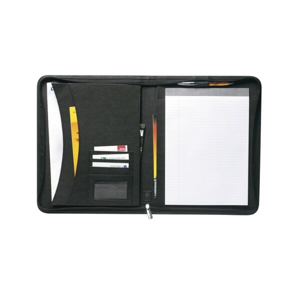 Χαρακτηριστικά: Bonded leather zipped conference folder (approx. A4), with a notepad with 30 pages, different pockets, and an elasticated pen loop (pen not included).
