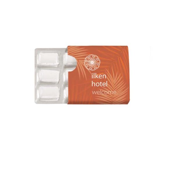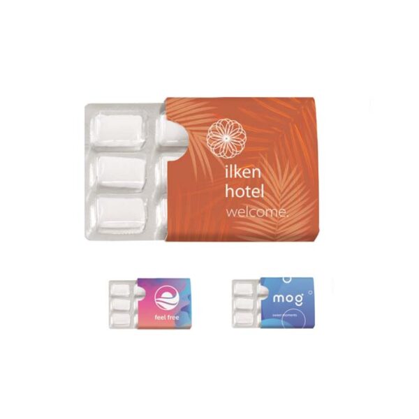 Χαρακτηριστικά: 6 pcs sugarfree chewing-gum (16% xylitol) in blister, packed in your full colour design cardboard sleeve. Ingredients are printed on sleeve backside.