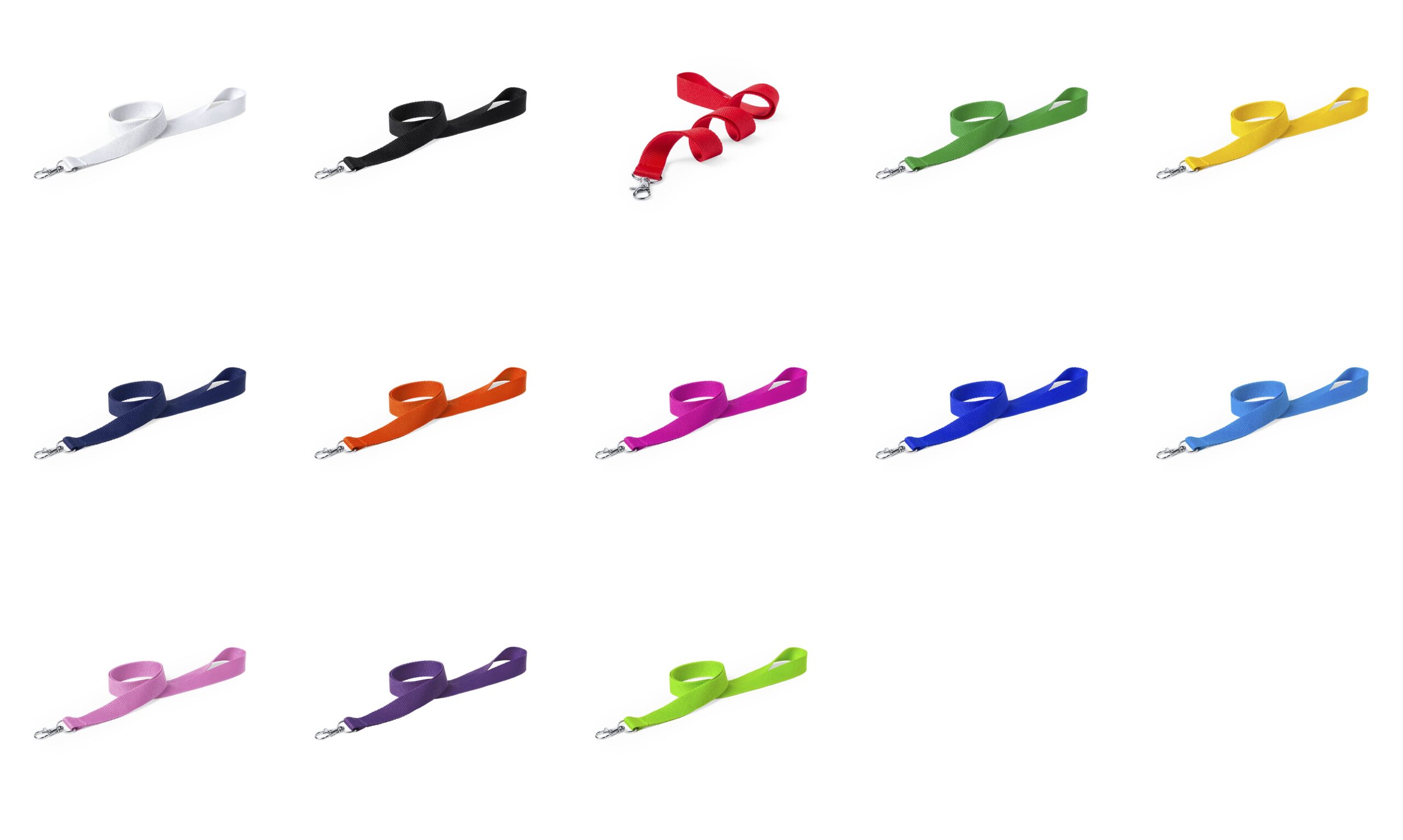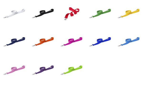 Χαρακτηριστικά: Lanyard made in resistant polyester. With metal swivel hook. Available in a wide range of colours, special white colour for sublimation printing. Polyester