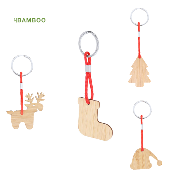 Χαρακτηριστικά: Keyring made of bamboo with Christmas motifs. Available in four original designs: Reindeer, Santa hat, Christmas tree and Sock. Materials such as bamboo promote the use of natural raw materials, thus reducing pollutant emissions. It comes from a highly resistant and versatile plant, with rapid growth and regeneration, making it an excellent alternative to the use of traditional wood. Bamboo