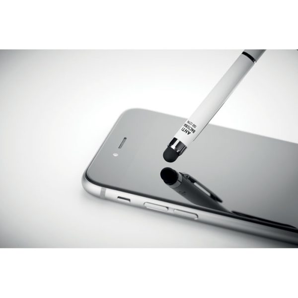 Χαρακτηριστικά: Twist action stylus ball pen in aluminium with shiny chrome clip. This pen has a special antibacterial barrel that contains a special additive (nano silver) that prevents bacteria from colonizing the surface of the pen. With the stylus tip you can easily operate touchscreens without having to use your fingers. ISO 22196. The pen has blue ink.