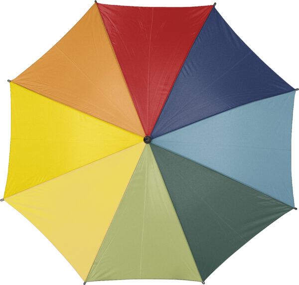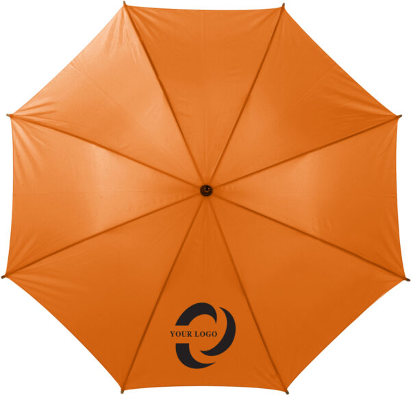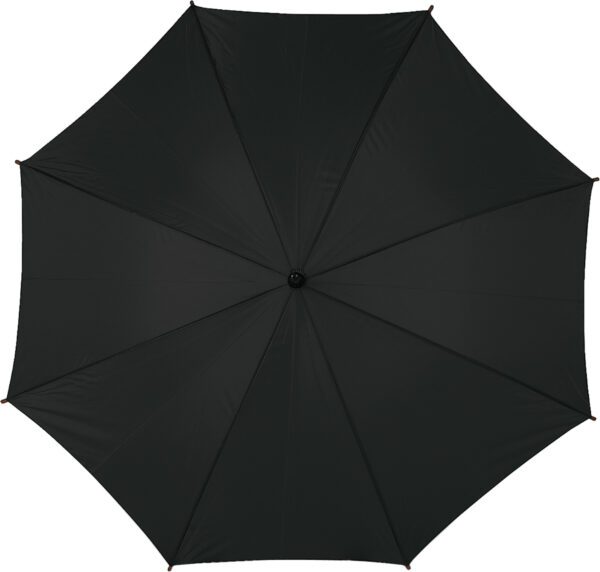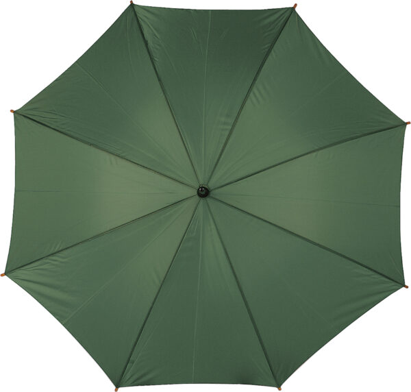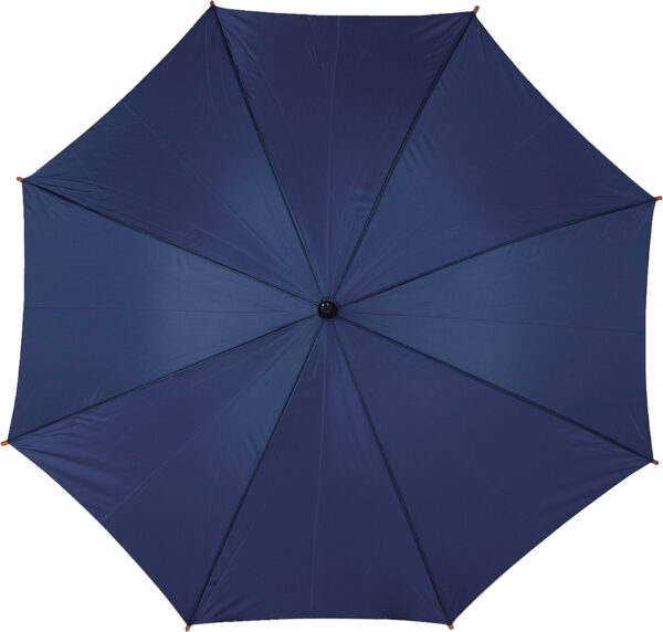 Χαρακτηριστικά: Polyester (190T) automatic umbrella with eight panels. Metal frame and wooden shaft and handle.