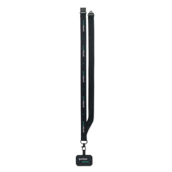 Χαρακτηριστικά: Lanyard in polyester with phone holder and safety buckle. 2 cm.