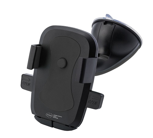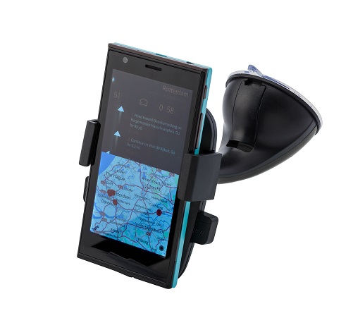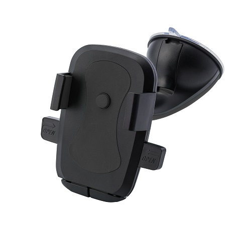 Χαρακτηριστικά: Plastic adjustable mobile phone holder for in a car, with big suction cup at the bottom for fastening to the dashboard or window. The brackets can expand to 8,1 cm. At the push of a button the brackets will retract.