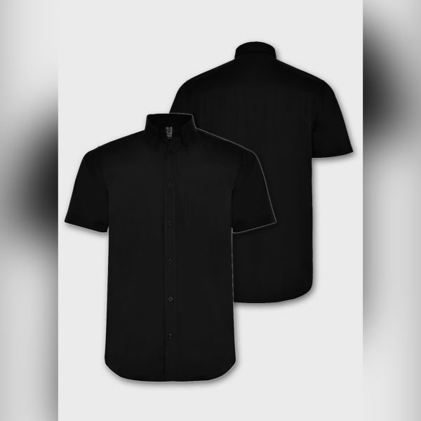 Με κλασικό, κολλαριστό γιακά με κουμπί.