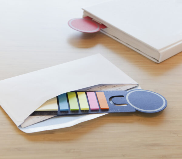 Χαρακτηριστικά: Cardboard bookmark with ruler and 5 different coloured small sticky notes and 1 colour larger sticky notes, 16 sheets each.