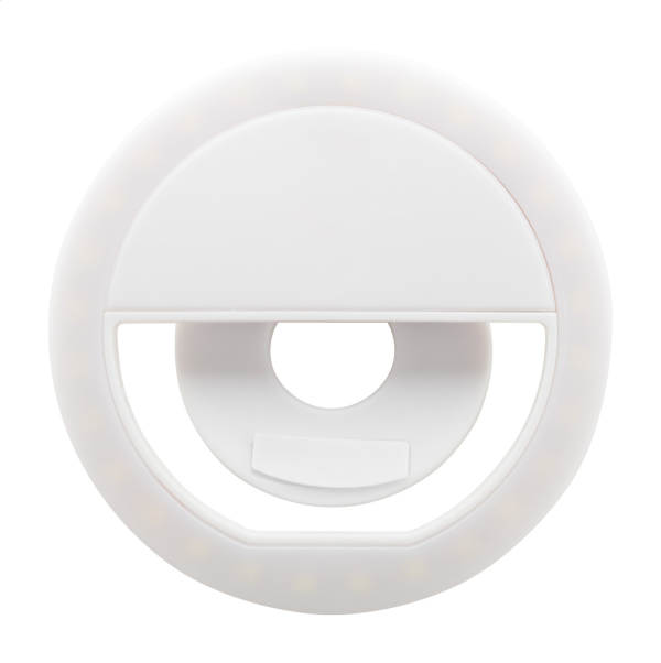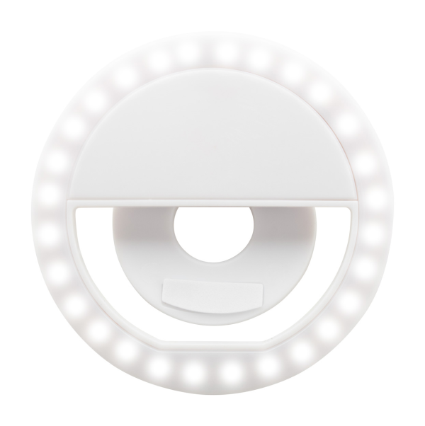 Χαρακτηριστικά: Plastic selfie ring light with 28 LED for mobile phones. With 3 adjustable brightness levels and built-in rechargeable battery. Including USB charger cable.