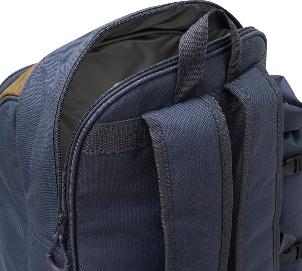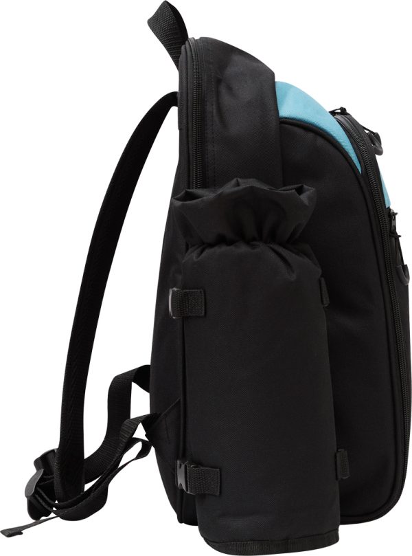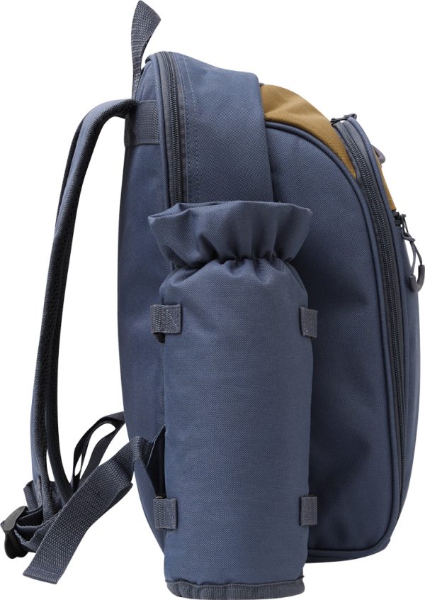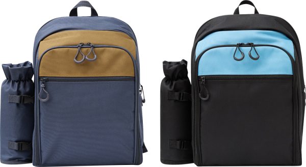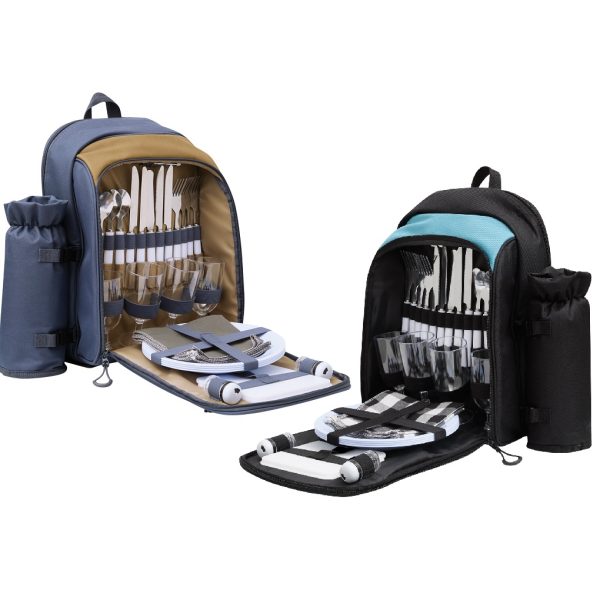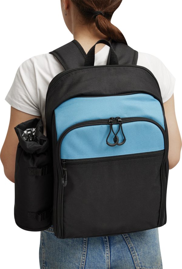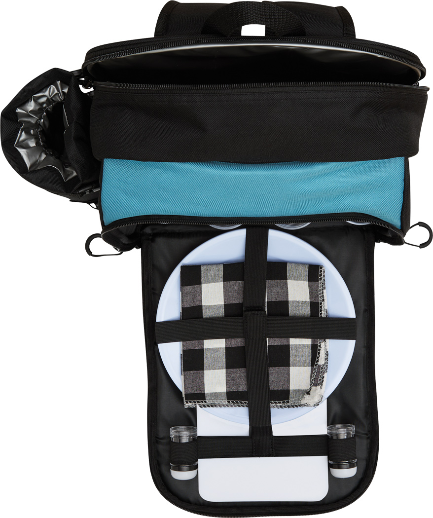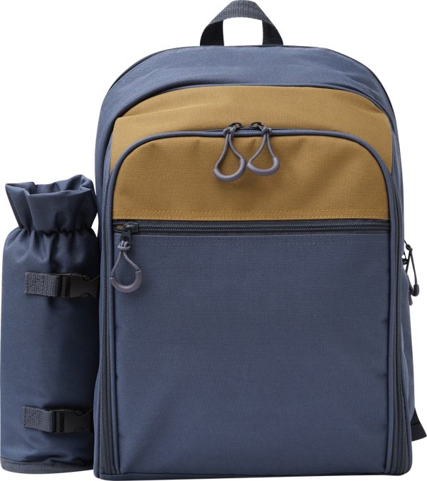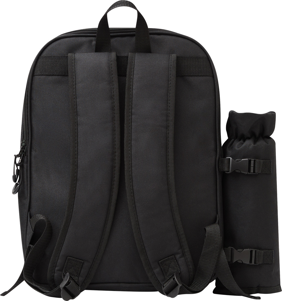 Χαρακτηριστικά: For 4 people: insulated main compartment with zip, middle compartment with zip incl. stainless steel cutlery with plastic handles, 4 plastic glasses and plates, 4 cloth napkins, salt and pepper shakers, front compartment with zip, carrying loop, padded shoulder straps, 1 detachable insulated bottle holder on the side