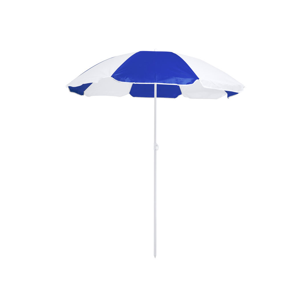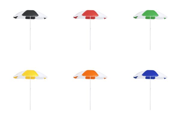 Χαρακτηριστικά: Beach umbrella of 8 panels in resistant nylon and in 2 color combination. 150cm in diameter, with side skirts with piping and metal coated tubes in white color. Adjustable in height and presented in a PVC sleeve with shoulder strap. Available in a wide range of combined colors.