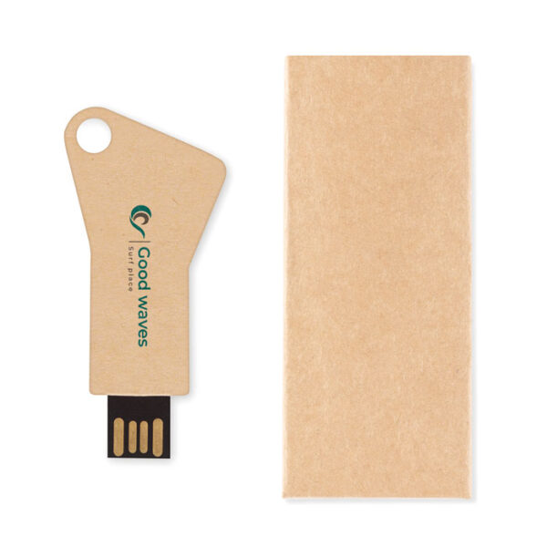 Χαρακτηριστικά: Paper key shaped USB Flash Drive. Printing options: silkscreen and UV printing. This model comes in a brown kraft paper box