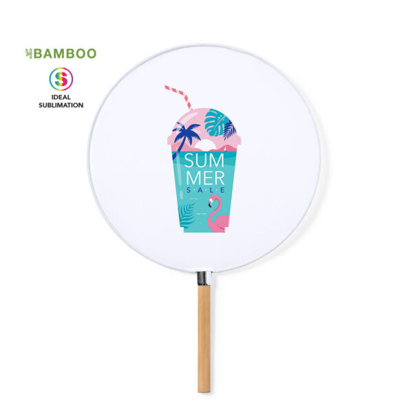 Χαρακτηριστικά: Stylish Pai Pai in resistant polyester, special for sublimation printing. With bamboo handle and chrome detail. Bamboo/ Polyester