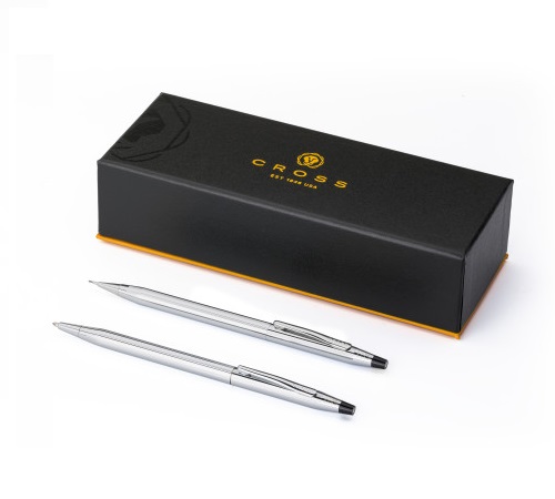Χαρακτηριστικά: Metal Cross writing set with ballpoint pen and mechanical pencil. Black ink and including a deluxe pen case.