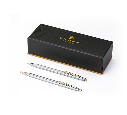 Χαρακτηριστικά: Metal Cross writing set with ballpoint pen and mechanical pencil. Black writing and including a deluxe pen case.