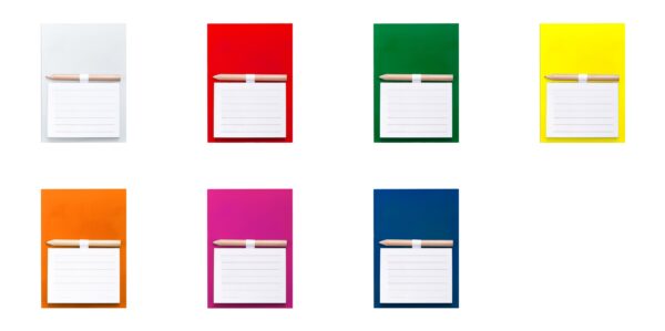 Χαρακτηριστικά: Magnet notepad in resistant cardboard of bright and varied colors. 40 sheets with striped design, with pencil and holder. 40 Sheets Notepad. Pencil Included